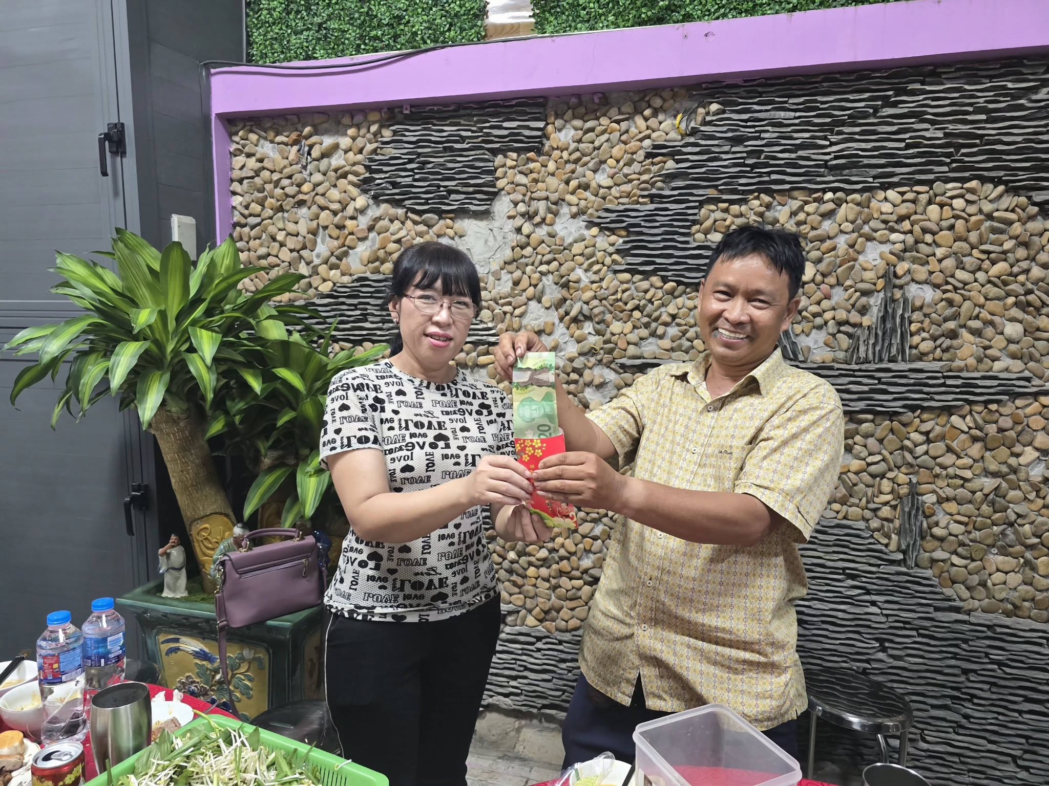 Để khích lệ tinh thần anh em, gia đình anh Trần Kha và chị Ái Uyên đã tài trợ bữa tiệc Tất niên vô cùng ấm cúng. Điểm nhấn của buổi gặp mặt là chương trình bốc thăm may mắn với những giải thưởng "có một không hai":