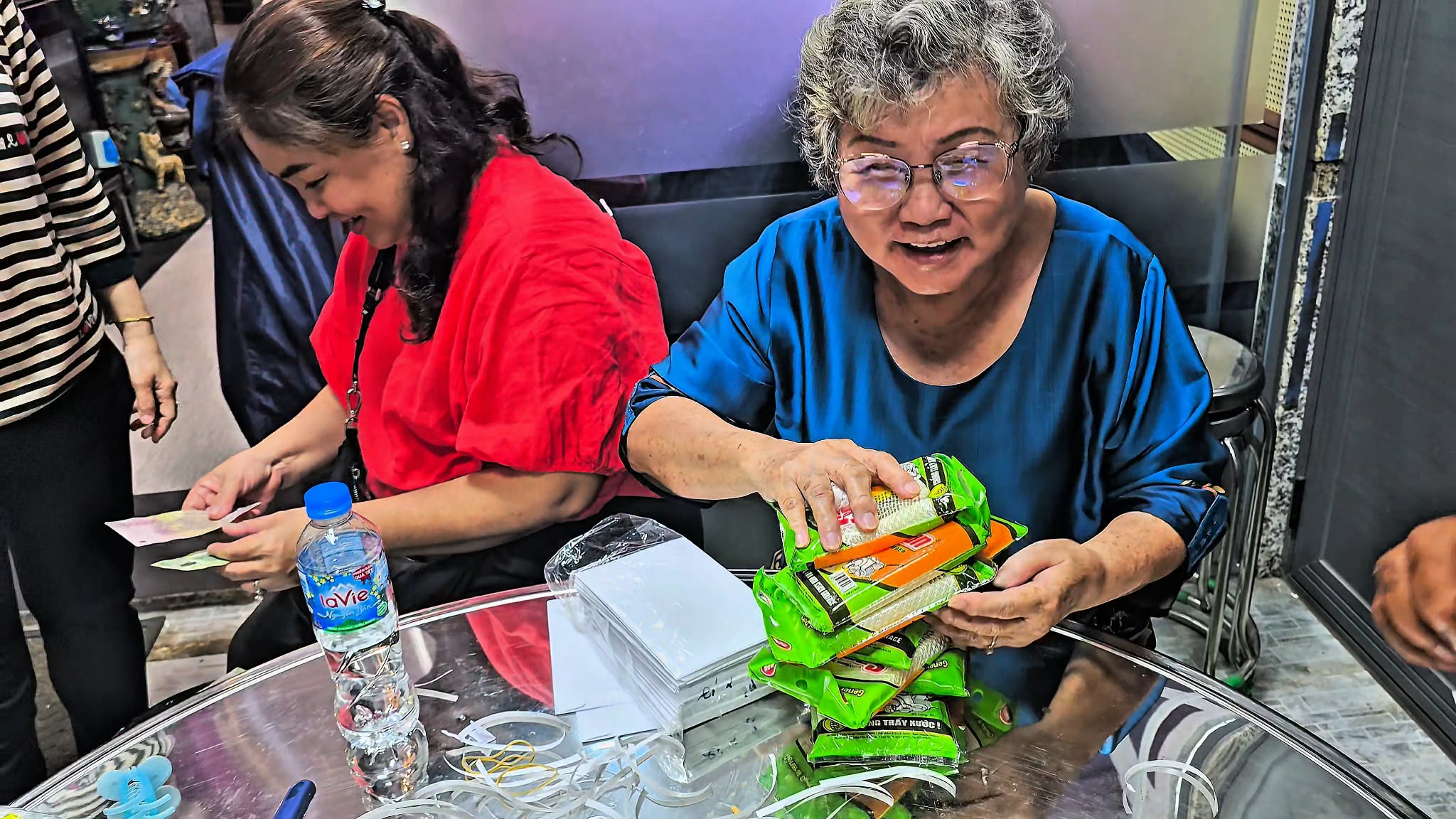 Với tinh thần khẩn trương, 100 phần quà và bao lì xì đã được đóng gói cẩn thận, đẹp mắt. Tất cả đã sẵn sàng để trao tận tay bà con nghèo ngay tại địa điểm này vào sáng mai (Chủ nhật, 08/02/2026 - tức 21 tháng Chạp).